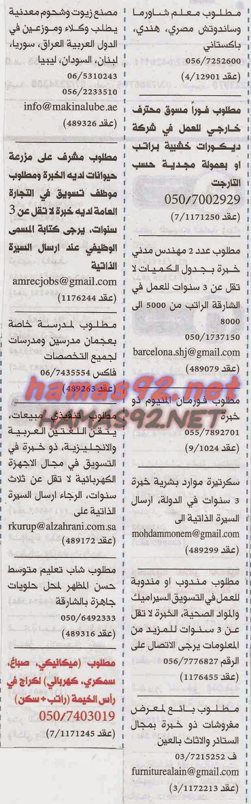 وظائف خاليه فى الامارات وظائف جريدة الوسيط العين 25 4 2015 Boarding Pass Travel Airline