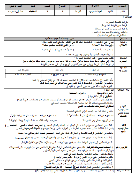 جذاذات القراءة نص وظيفي صورة جدي الاسبوع الاول مرجع في رحاب اللغة العربية للمستوى الثاني ابتدائي