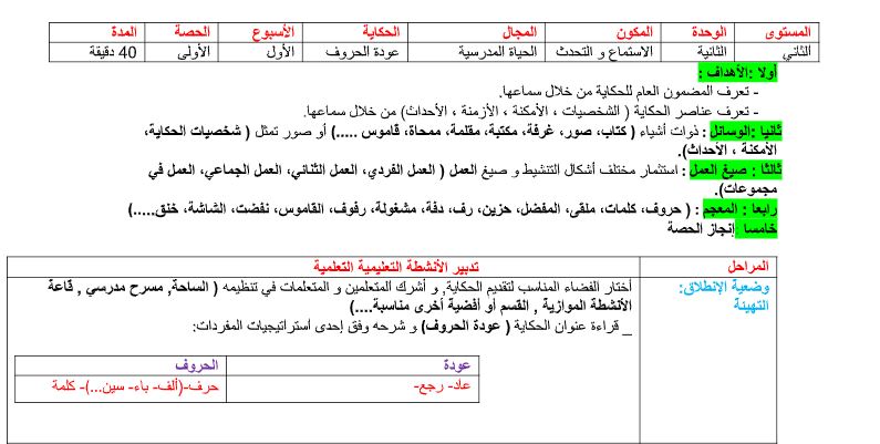 جذاذات الاستماع و التحدث الوحدة 2 حكاية عودة الحروف مرجع في رحاب اللغة العربية المستوى الثاني