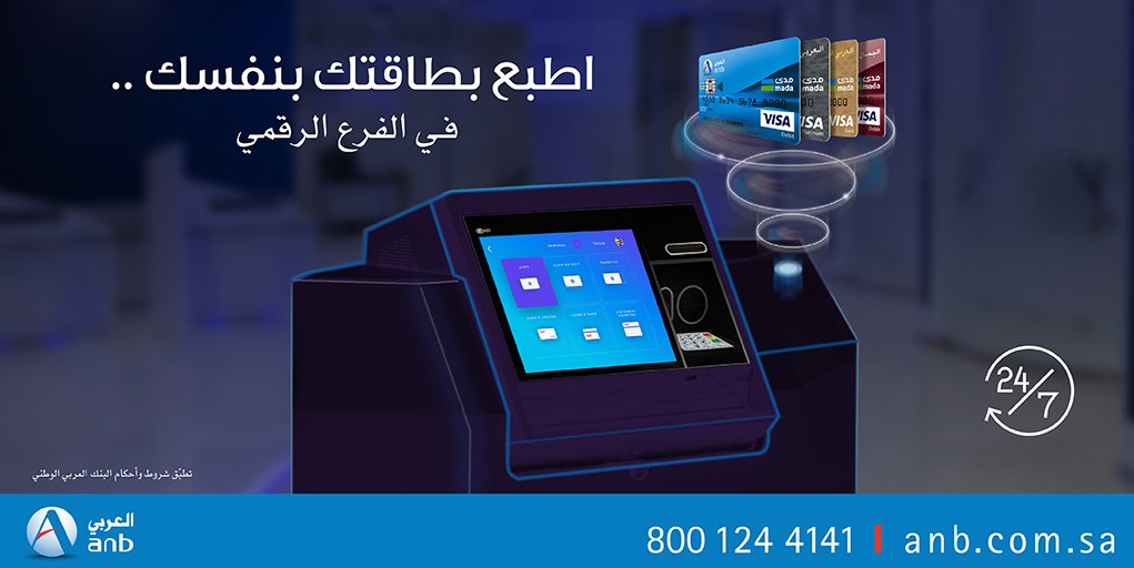 البنك العربي الوطني On Twitter اصدر بطاقتك ذاتيا وفوريا يمكنكم الان إصدار أو تجديد بطاقة العربي مدى للصراف الآلي بسهولة تامة من خلال أجهزة الخدمة الذاتية اضافة إلى العديد من الخدمات لمعرفة